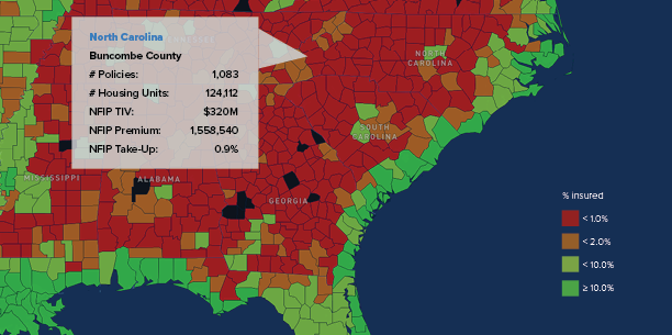 Helene dumped 40 trillion gallons of water across Florida, Georgia, the Carolinas, Virginia, and Tennessee, causing hundreds of deaths and billions in insured losses. Much of the loss was concentrated in western North Carolina, with parts of Buncombe County – home to Asheville and its historic arts district – left virtually unrecognizable. Less than 1 percent of residents in Buncombe County had federal flood insurance when Helene struck.