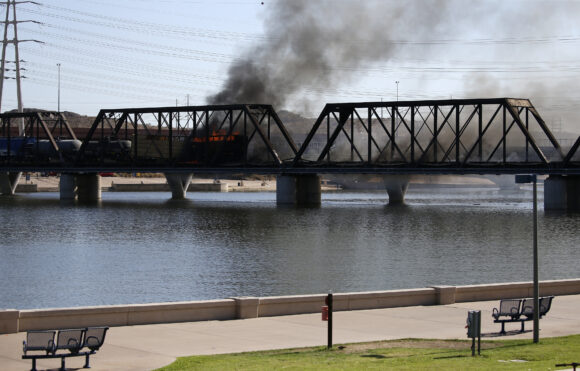 The fire burned for about nine hours, billowing smoke and scorching the wooden trestles of a nearly 75-year-old railroad bridge […]